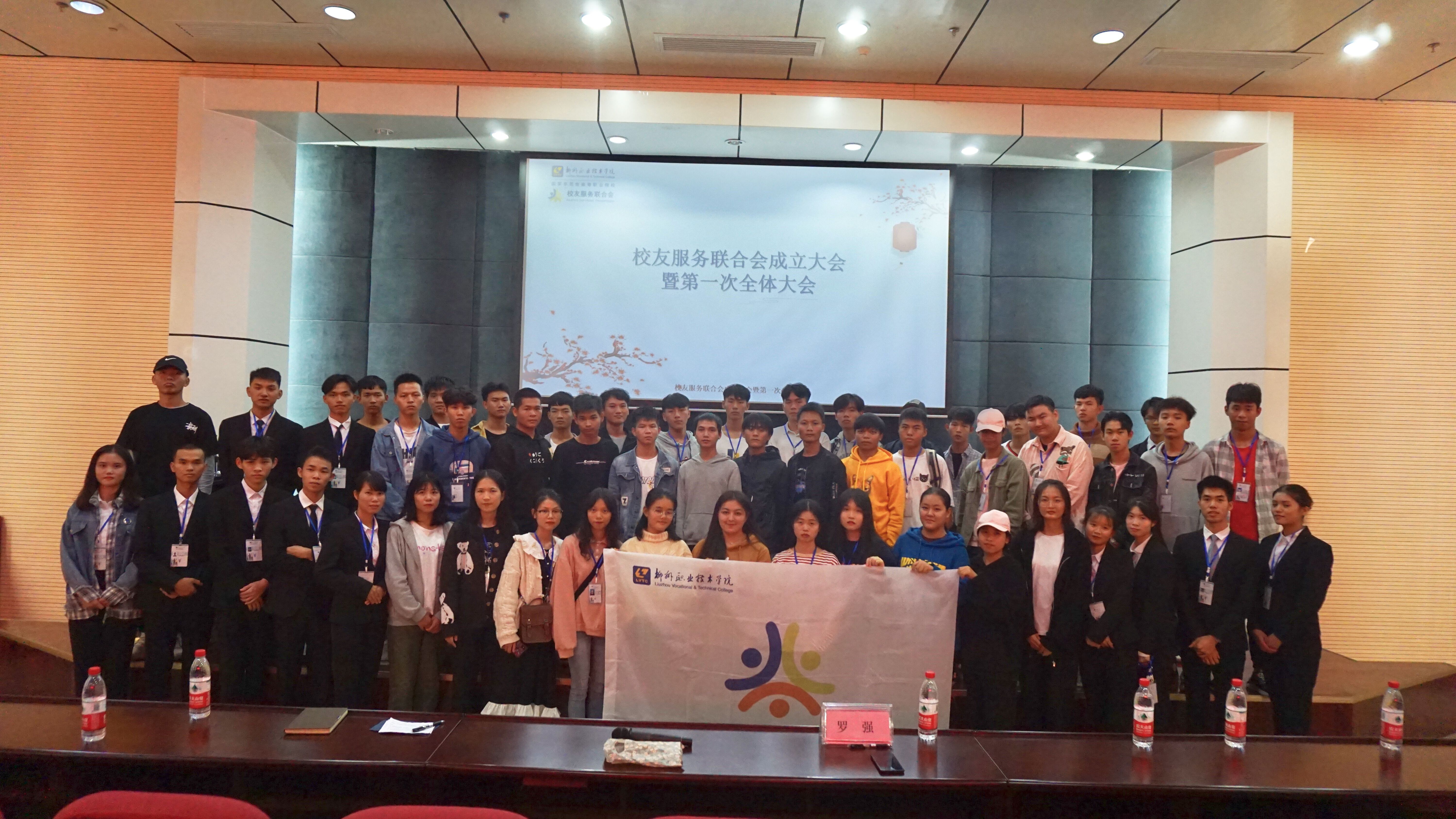 新闻网消息(文/校友服务联合会 覃子龙 李月华 图/校友服务联合会)2019年10月24日,“校友服务联合会”成立啦!!!它隶属学校招生处(校友办公室),是柳职首个服务校友的校级学生组织,为柳职校友们提供专门的联络及接待服务。首届联合会由校友办公室罗强老师担任指导老师、艺术学院盘育宏同学担任会长、贸易与旅游管理学院的李月华同学和机电工程学院的吕明龙同学担任副会长。校友服务联合会的宗旨是:联络校友,增进校友与母校的友谊,发扬柳职“踏踏实实做人,认认真真做事”的优良传统,共同为柳职校友事业的开拓与创新,为母校和校友的共同发展贡献力量。